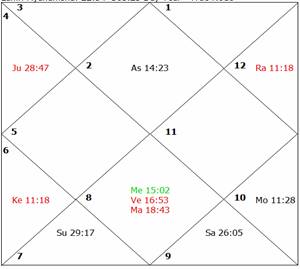 determinant in this case as there is no mooltrikona sign in the fourth house. Mercury is combust and under the close influence