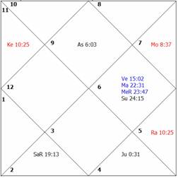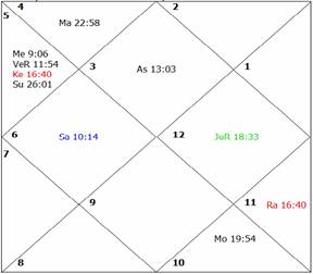 The main period of Mars gave him fears of litigations. As Moon and Mars in D-IV are weak, the native
