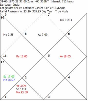 almost exact affliction of Rahu. The afflictions to Venus and Mars were the