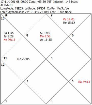 is under the exact affliction of the lord of the eighth house. The lord of the