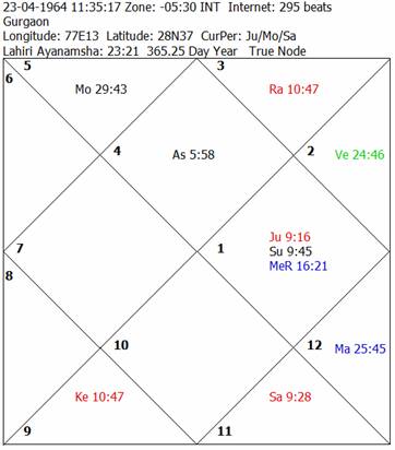 the Sun ruling the twelfth house. The conjunction of the Sun indicates the