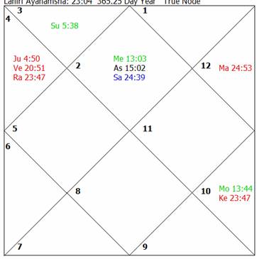 is well placed but weak due to weakness of dispositor. The planets Sun,