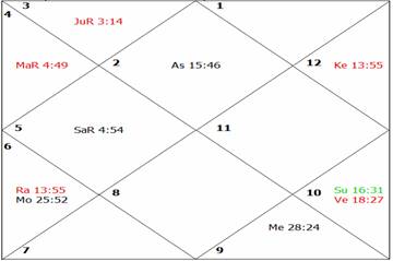 the lord of the third house, is well placed in the ninth house. Venus is weak as its di