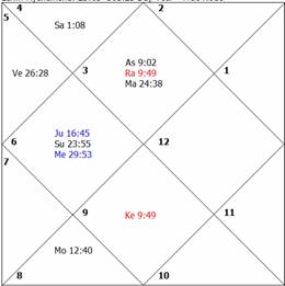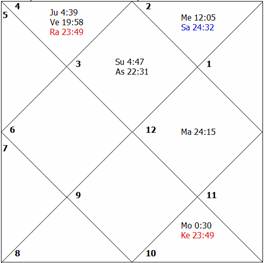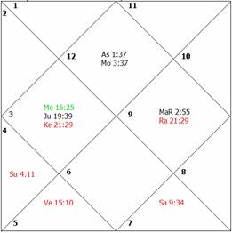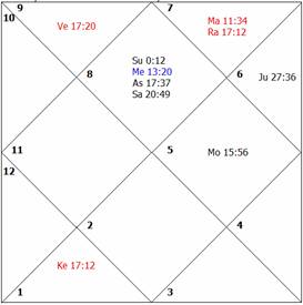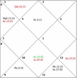 exactly aspects the lord of the fourth house as well as the lord of the third house, thus causing afflictions to both planets Venus and