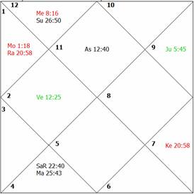its mooltrikona sign house is under an exact affliction. The lords of the eleventh, first and eighth