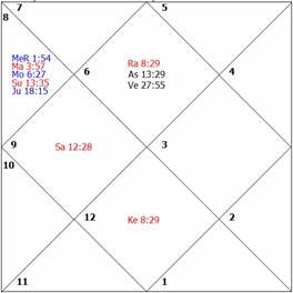 debilitated and badly placed in the house of conflicts. The weak Venus is also closely afflicted by