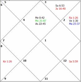 caused persistent sufferings in life due to failures in all her ventures. The placement of the Moon close to the most