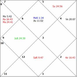 sixth lord. Mercury is the weakest planet and is closely afflicted by Jupiter. The