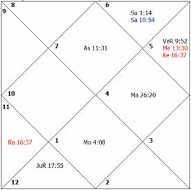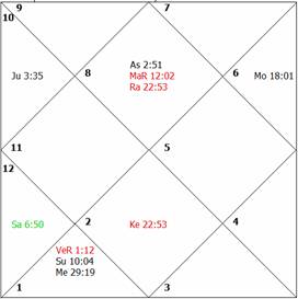 hours of the birth, the transit Moon came under the exact affliction of Rahu,
