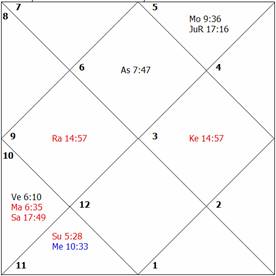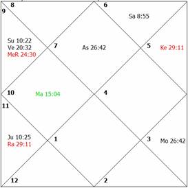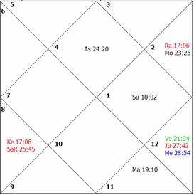Mercury is placed in the twelfth house and its dispositor is debilitated. All factors governing the longevity are weak. The native breathed his last at the age of 39