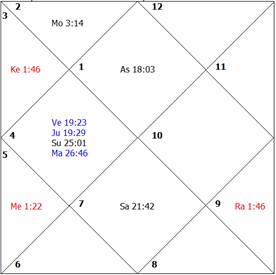 Cancer rises in the ascendant in the horoscope. Venus becomes the prime