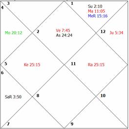 Saturn is combust and placed in the twelfth house. Mars, ruling the house of foreign residence,