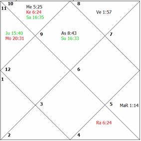 and Mars, placed in the tenth house. Saturn, though placed in its own
