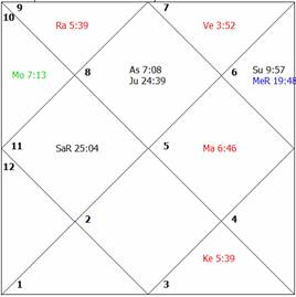 The lord of the twelfth house is placed in the twelfth house. The lord of the eighth house, Jupiter, is