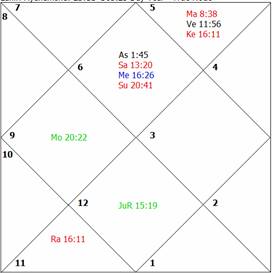 effective point of the twelfth house is closely aspected by Jupiter, but Jupiter is unable to