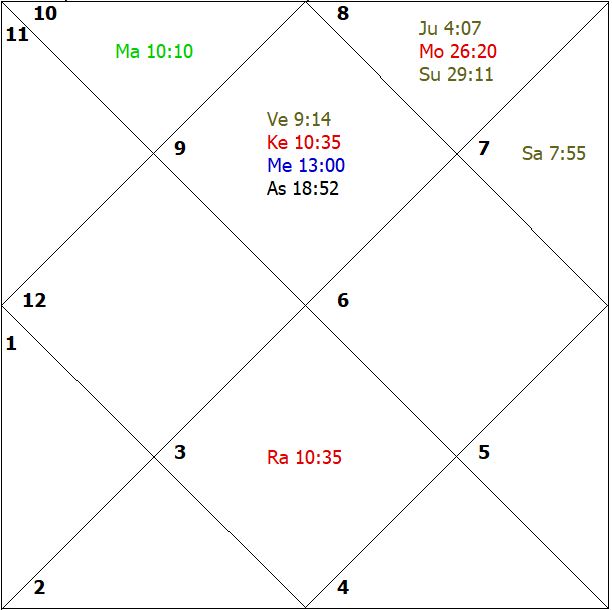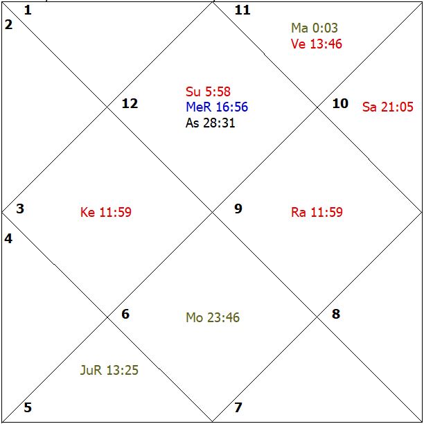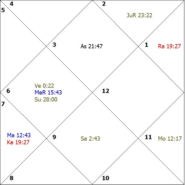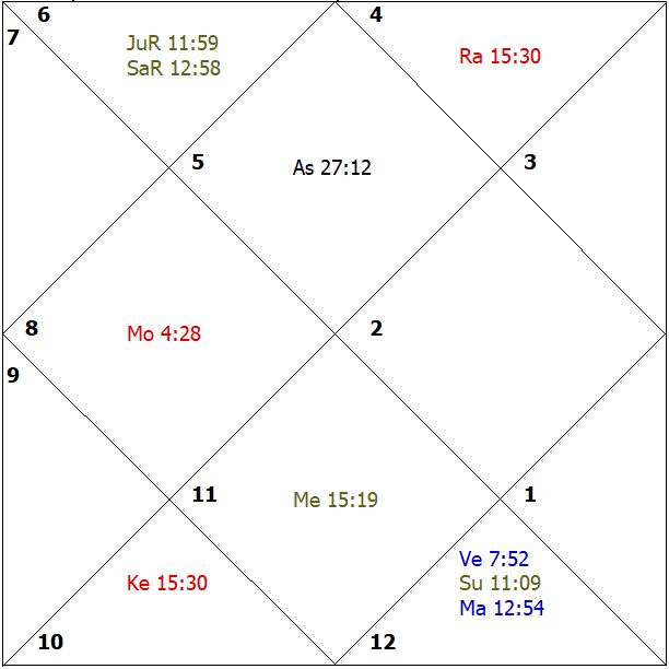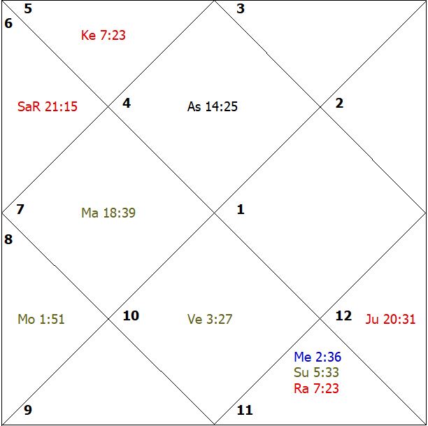 was weak and the Sun was under the close aspect of Rahu. Saturn was combust;