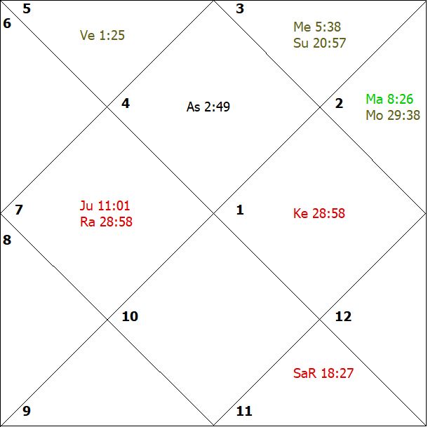 house of family, the Sun, is under the exact affliction of Rahu and was in the
