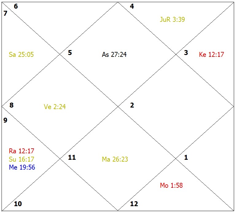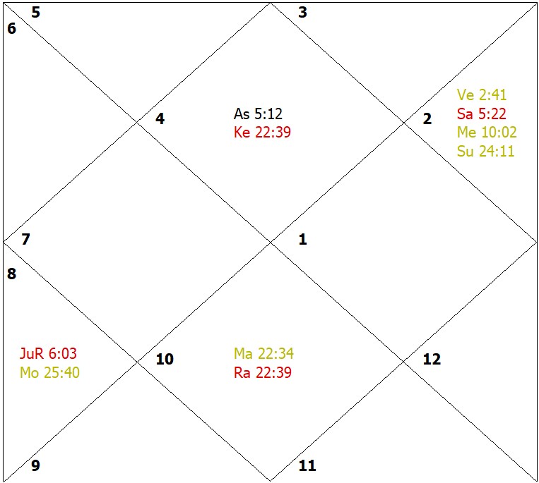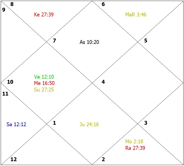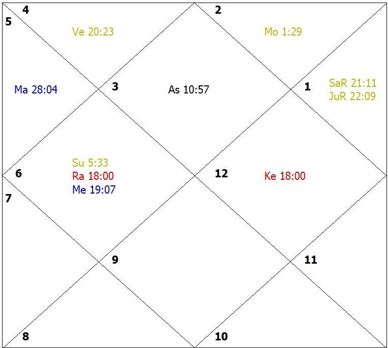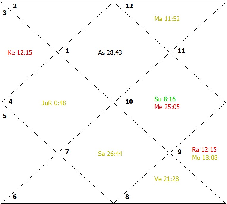 A strong Sun adds to the organizational capabilities and enhances the results and success. The strong position of Jupiter and the lord of the ninth house, if containing a mooltrikona sign, contribute the element of luck blessing the native with easy success.