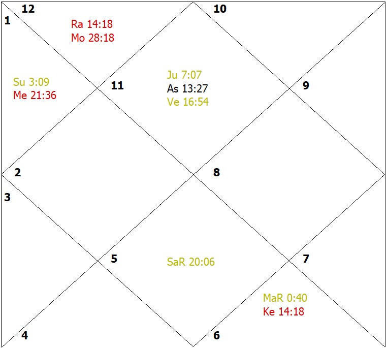 While handling the question of whether one should venture into a business or not, the astrologer should particularly consider the influence of the planets governing losses on the fourth house, second house, tenth house, third house and eleventh house or their lords. It is also necessary that the lords of the second, tenth and fourth houses and planets the Sun and the Moon are not under the close influence of Rahu which results in sudden suffering or losses or loss of reputation and causes problems with the state agencies.